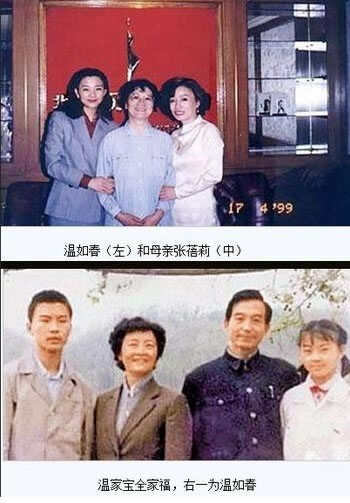 1、温家宝女儿温如春--前雇主:瑞士信贷。外交人士和银行家们说,中国前总理温家宝的女儿温如春曾一度在北京供职于瑞士信贷。温如春曾就读于南京国际关系学院,上世纪90年代中期留学美国,其一位校友说温如春埋头学习,平等待人,没有高干子弟的骄气。